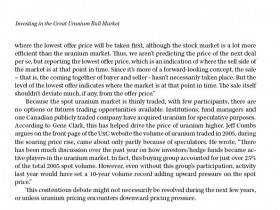 lang laufende Lieferverträge, die direkt mit Produzenten geschlossen wurden / werden, sind etwas anderes, als die Deals, die über die Spot Auctions geschlossen werden. Grundsätzlich kann jeder Produzent auch in die Spot Auctions verkaufen, sofern seine anderen Lieferverpflichtungen trotzdem erfüllt werden können. Im Gegensatz zu direkten Lieferverträgen werden die Verkäufe in den Spot Auctions aber nicht direkt zwischen Produzent und Käufer geschlossen. Das ganze ist etwas kompliziert, da Vorgehensweise über viele Jahrzehnte gewachsen. Zum Einblick in den Ablauf der Spot Auctions gebe ich mal den Text aus dem Buch "Investing in the great Uranium Bull Market" als Anhang dazu.
