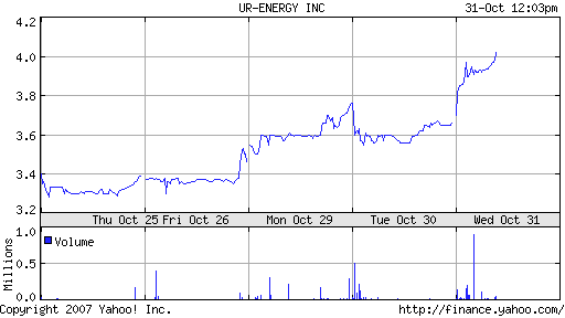 DENVER, COLORADO--(MARKET WIRE)--Oct 31, 2007 -- Ur-Energy Inc (Toronto:URE.TO - News) ("Ur-Energy" or "the Company") is pleased to announce that it has submitted its Application to the US Nuclear Regulatory Commission ("NRC") for a Source Material License for its Lost Creek uranium production project. This license is the first stage of obtaining all necessary licenses and permits to enable the company to recover uranium via in situ recovery method at the Lost Creek project. The collection and compilation of the extensive environmental background data for the Application has taken more than two years. The NRC has indicated that the application review process can take up to 18 months to complete. Vice President of Mining and Engineering Wayne Heili stated, "A great deal of effort by our staff and consultants went into preparing this License Application. We believe the application is technically sound and administratively complete. I anticipate a relatively smooth and efficient review process."
