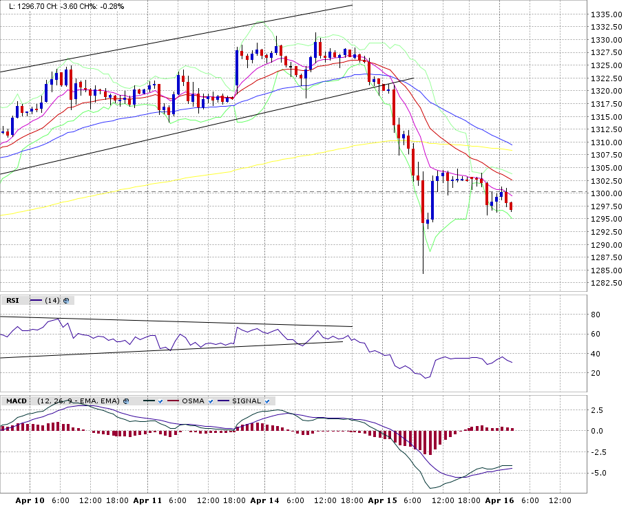 Gold Future: Chart 2: Der Stundenchart zeigt wieder mal deutlich, was ein Moving Average für eine Bedeutung hat. Nach dem Abverkauf mit Gegenbewegung bildet nun der 9 er ein nicht zu überwindender Widerstand. Da noch keine Divergenz vorhanden ist, ist somit mit erneuten Bärenattacken zu rechnen. Gegen oben ist der Deckel drauf beim 9 er, evt. kann es bis zum roten 20 er gehen, höher ist nicht zu erwarten, wenn es weiter runter gehen soll....