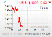 Verlust in 2 Wochen rd. 16 % gegen den Euro, das ist enorm. . 1,266 : 1,465 momentan !!Im Umkehrschluß fester Goldpreis--in $--.