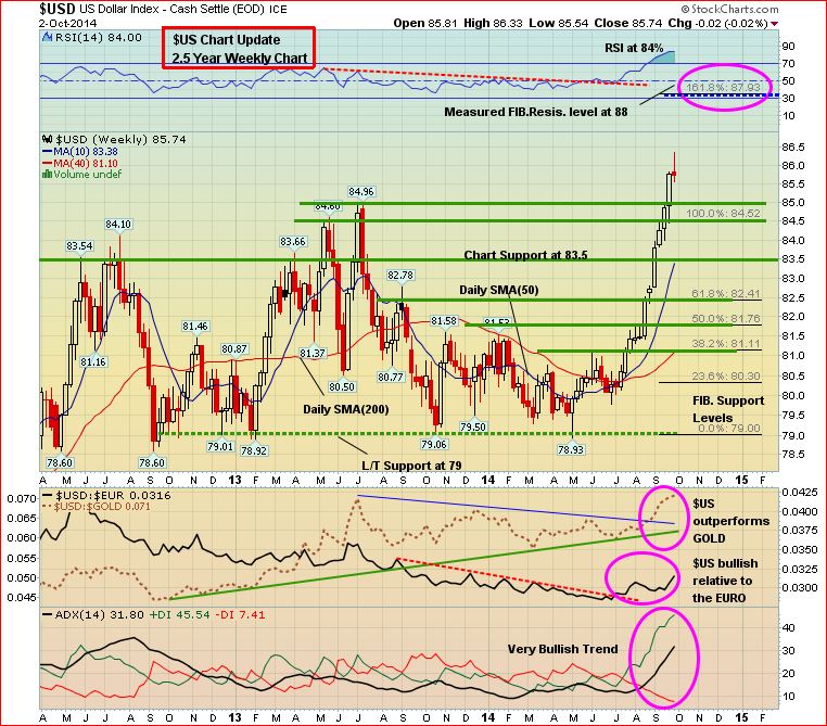 The current rise in the US$ has been almost straight up with little or no correction. A violent up move could be met with a violent correction and possibly soon. How gold responds during that correction should be watched carefully...“