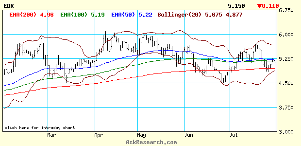 Technically, EDR also looks attractive as the shares recently bottomed on a three-year trend line support and are now bouncing back: