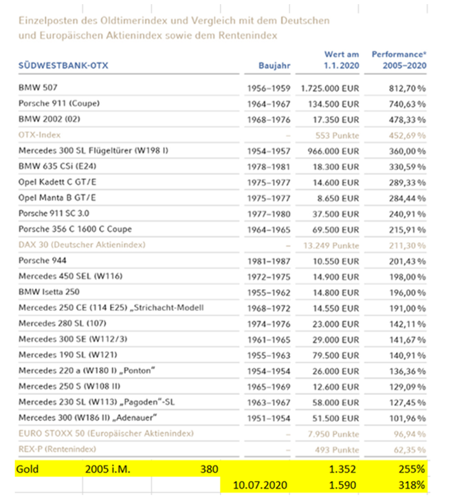 Die Tabelle habe ich ergänzt mit der Wertentwicklung von Gold …