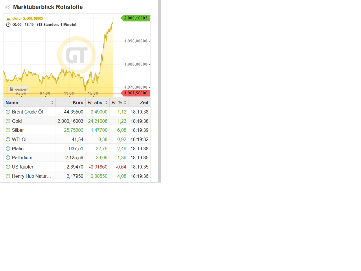 Weiss nicht ob man sich jetzt wünschen sollte, die 2000 $ Marke fallen zu sehen. Könnte zu sehr Aufmerksamkeit erzeugen, was auch nach hinten losgehen kann (zB staatl HandelsBeschränkungen uä). Andererseits es sind noch Sommerferien, gibt andere "wichtige" Themen und die Chance besteht der POG klettert relativ unbeachtet.