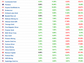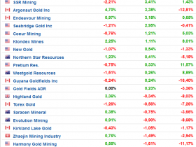 Dollar................ + 0,7%Die Goldminen insgesamt stiegen entgegen schwachem Gold und mit stärkerem Gold.
