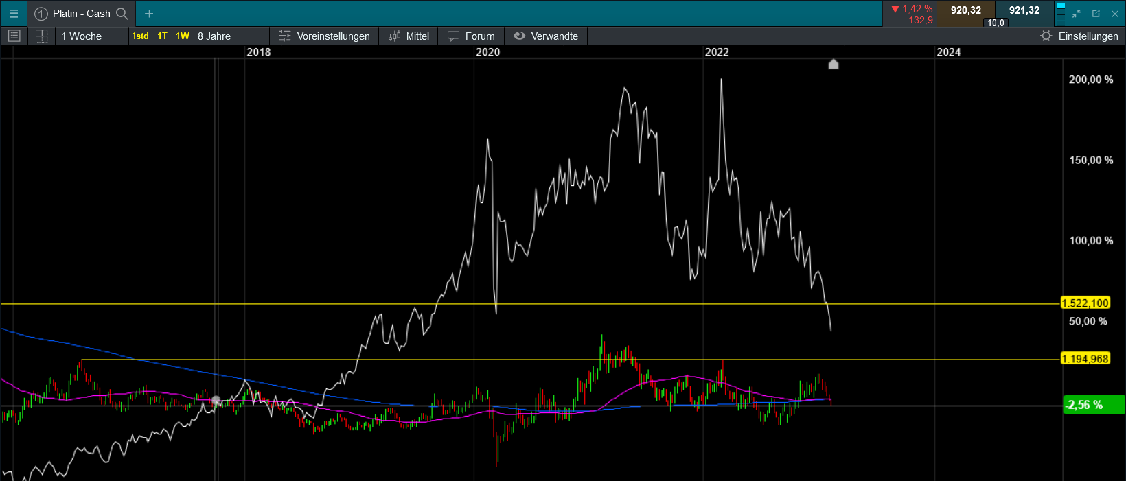 Palladium auf einem neuen 52WT, minus 4,5% auf 1558$/oz