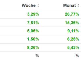 Sehr gut ersichtlich, daß mit einigen PM Aktien auch die Standardaktien klar ausperformt werden können.Grüsse