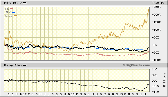 Hier ein 1 J , 3 J und 4 Jahres Vergleich zw. PAAS, SILV, Everybodys Darling AG( First Majestic) und SLV.