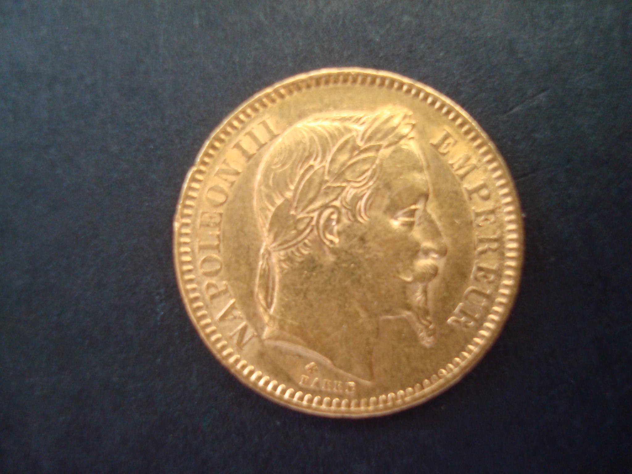 - 20 Francs Frankreich Napoleon III. von 1864. Münzstätte BB (Strasbourg). Erhaltung ss. Gewicht sollte bei ca. 6,45 g / 900er Gold liegen. Wert: ca. 185 - 200 Euro.