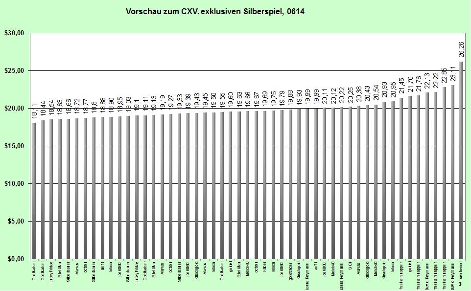 goldtrader lag ganz richtig mit dem Schlußkurs von 20,96 $. Somit ergeben sich folgende Gewinner und Ausschüttungen: