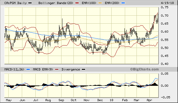 Die heutigen, erneut guten News, mit u.a. 28g/t Gold über 7m, hiefen PGM auf ein neues Jahreshoch von 0,68 CAD.