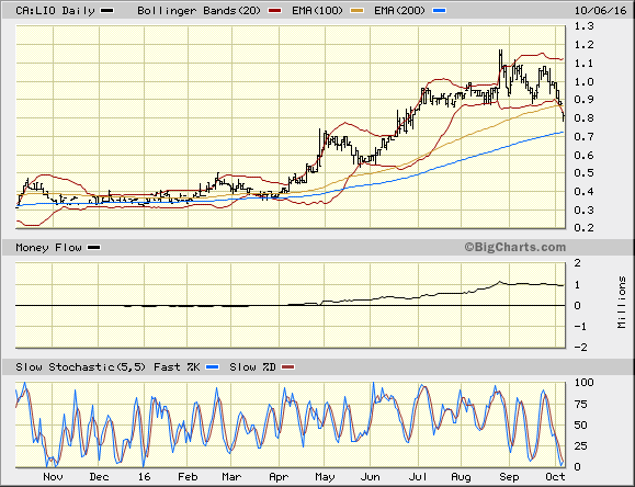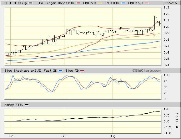 LIO war gestern in schwächelndem Markt der 3.stärkste Wert der 95 gelisteten Indexaktien mit + 7.95 % auf 0,95 C$