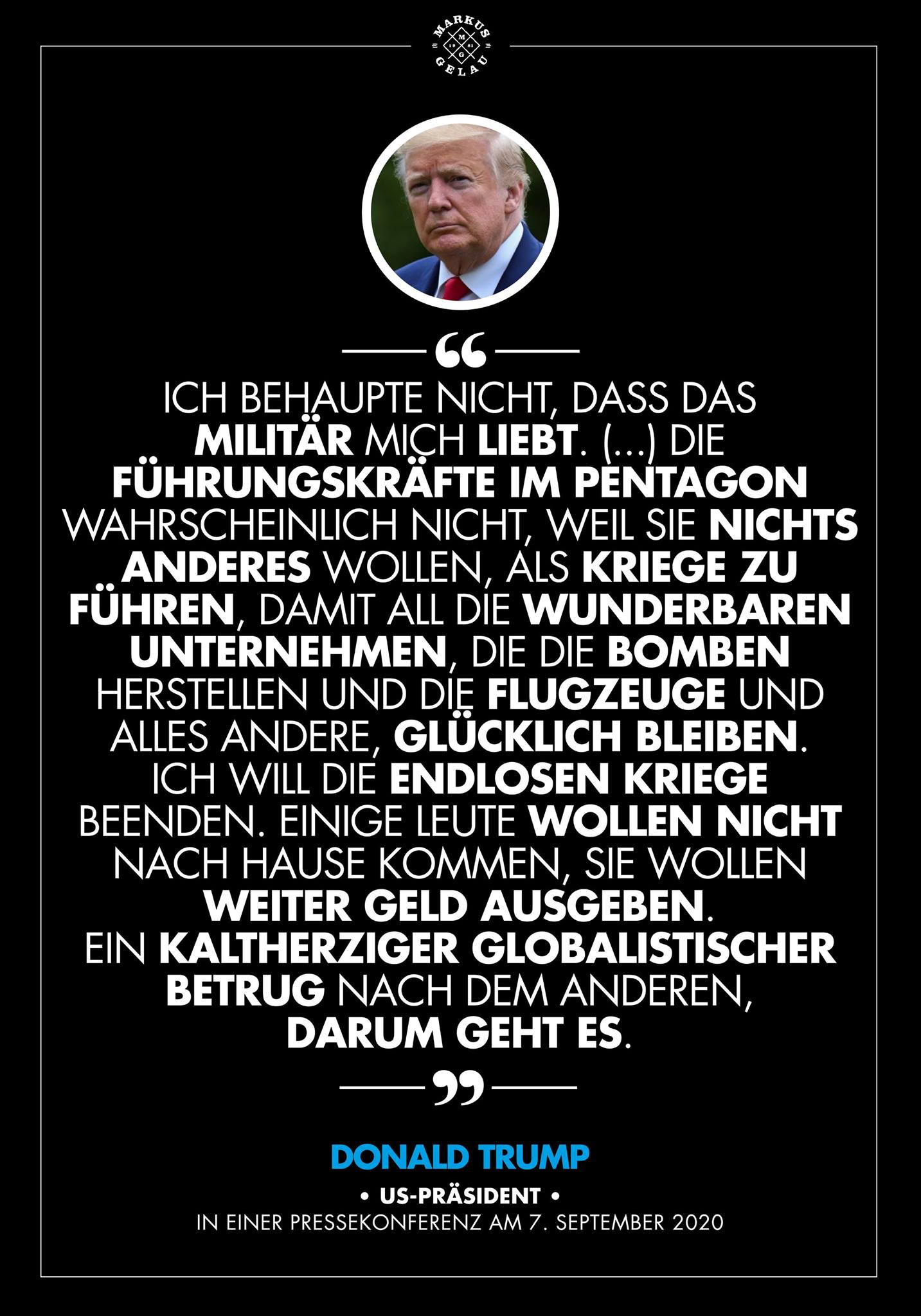Trump ist eine willkommene Ablenkung im (NWO) Transformationsprozess, am Ende wird man ihm Innenpolitisch die Zerstörung der US-Mittelschicht in die Schuhe schieben, natürlich auch Corona aber das allein wäre ja zu langweilig und zu wenig mahnende Geschichte vor den "Nationalisten" in der Neuen Normalität.