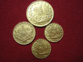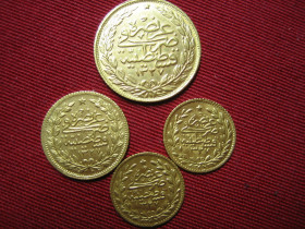 4 x Osmanisches Reich ( 2 x 25 Piaster,1 x 50 Piaster, 1 x 100 Piaster) zusammen 600.-