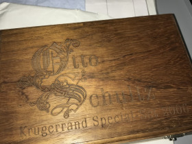 Das Set besteht aus jeweils einem Krügerrand Goldstück der Größen 1 Unze, 1/2 Unze, 1/4 Unze sowie 1/10 Unze, Au 916,67, eine Edelholzbox mit Nummerierung, sowie ein Zertifikat.