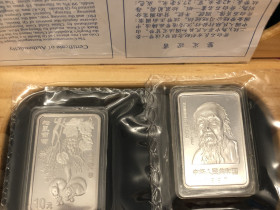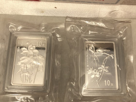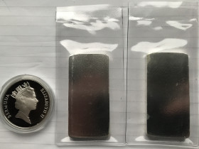 Insgesamt 251,18 g Feinsilber. Preis Paket 1: 115 Euro zzgl. VersandPaket 2: 2 x Silberbarren + 1 Münze:2 x 100 g Silberbarren / 5 Dollar Barrenmünze Cook Islands 2009 original verschweißt1 Dollar Bermuda - 25 Jahre WMF - 1986 PP - 28,28 g 925er Silber