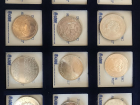 Paket 1: 11 Silbermünzen + 1 Medaille in Sammelbox:5 Pfund Ägypten 1985 stgl – 17,5 g 720er Silber5 Pesos Mexiko 1948 stgl – 30 g 900er Silber10 Kroner Dänemark – Krönung von Margarethe – 1972 stgl – 20,4 g 800er Silber25 Kroner Norwegen – 25 Jahrestag Kriegsende – 1970 stgl - 29 g 875er Silber1 Peso Dominikanische Rep. 1974 ss – 26,7 g 900er Silber1 Sol Peru 1934 ss -25 g 500er Silber10 Gulden Niederlande 1973 stgl – 25 g 720er Silber1 Dollar Kanada 1963 vz-stgl – 23,33 g 800er Silber1 Peso Mexiko / 1 Unze 1980 – 33,625 g 925er Silber5 Pfund Ägypten 1986 ss – 17,5 g 720er Silber50 Francs Frankreich 1973 stgl – 30 g 900er SilberMedaille Seligsprechung Rupert Mayer 1987 – 26 g 1000er Silber