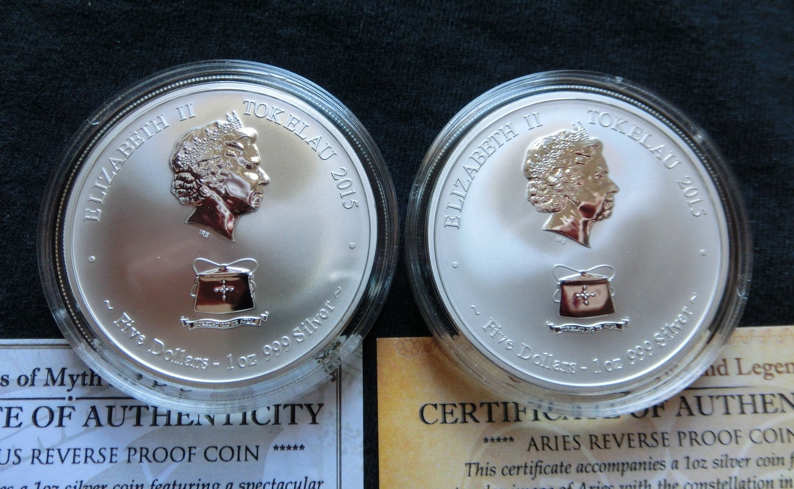 TOKELAU "Creatures of Myth and Legend”je 1oz Reverse Proof2015 Aries / Widder&2015 Capricorn / SteinbockAuflage jeweils nur 2.500 Stückincl. ZertifikateVersand nach Wunsch gegen Kostenübernahme.beide Münzen zusammen 75,-€http://fs5.directupload.net/images/161210/i3x3tjnw.jpghttp://fs5.directupload.net/images/161210/w52z5i8a.jpgBei Interesse bitte PN. -