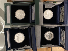 4x10 Euro Österreich 925er, je 16g fein (nur zusammen mit Canada Dollar wegSchloss Ambras 2002 wegSchloss Hellbrunn 2004 wegKlosterneuburg 2008 wegAbtei Seckau 2008 weg