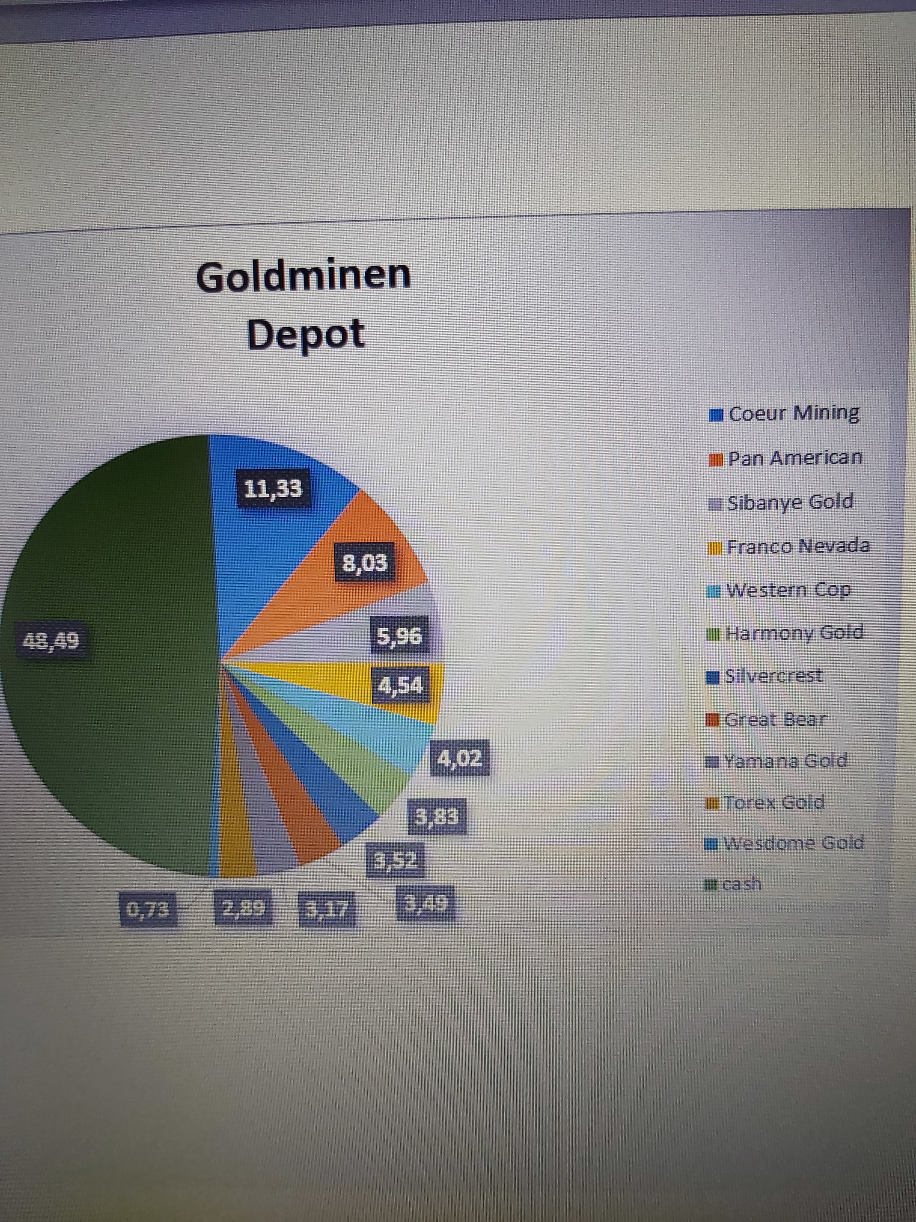 Eigentlich sind die nächsten 4 Monate keine Änderungen geplant, aber Sibanye u. Wesdome muss man wohl verstärkt im Auge haben, kann ja nicht ewig in dem Tempo so weitergehen. Stop loss ist zumindest gedanklich gesetzt, ggfls. Teilverkäufe und je nach Situation Käufe der Gattungen auf der Watchlist.