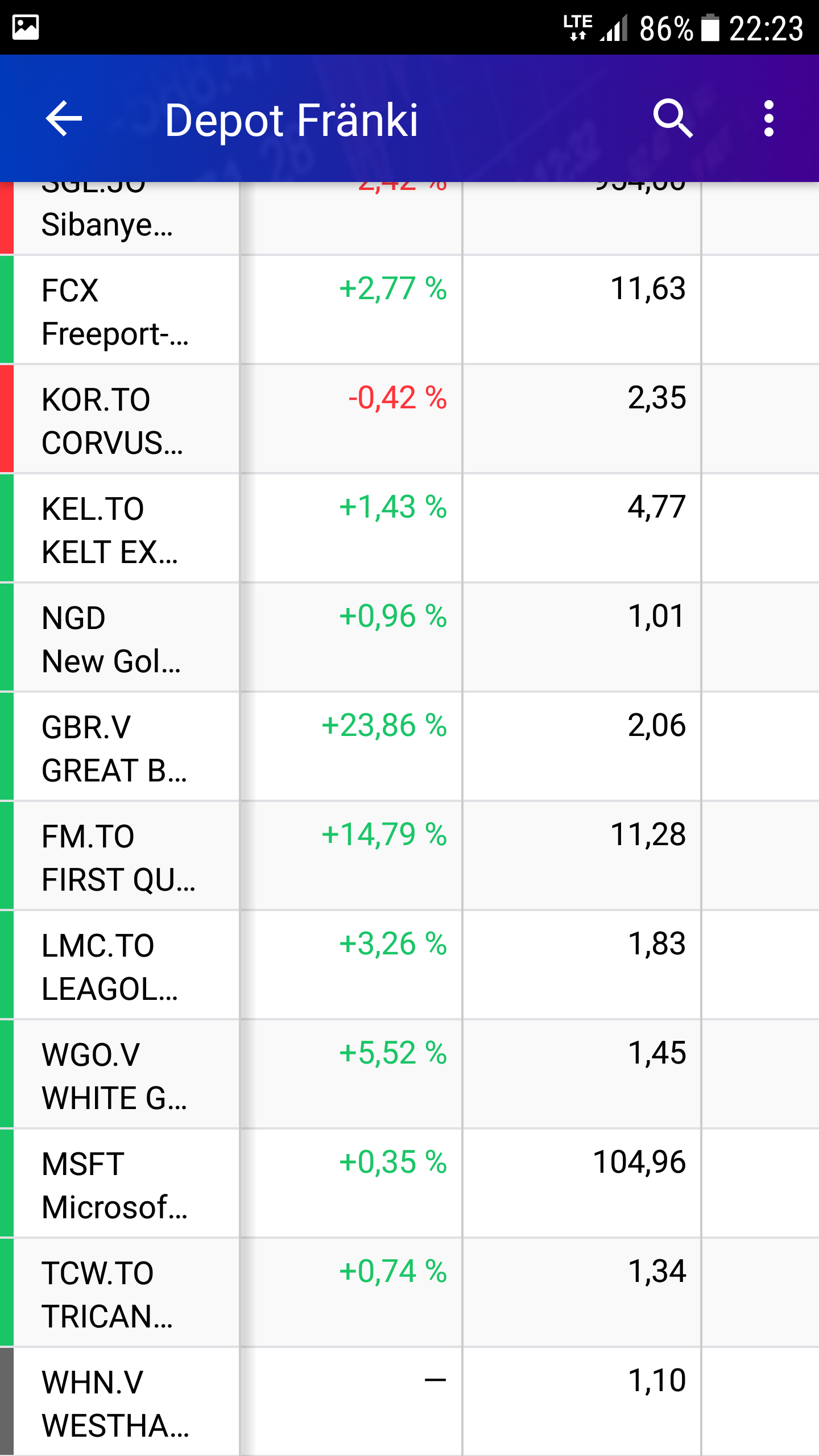 mittlerweile durch Zukäufe und Neukäufe breit aufgestellt und sehr hoch investiert in GPR, TXG, SIL, KL, WDO, BVN, EDR, TGZ, SBGL, FCX, KEL, KOR, FM, NGD, GBR, LMC, WGO, TCW, WHN.