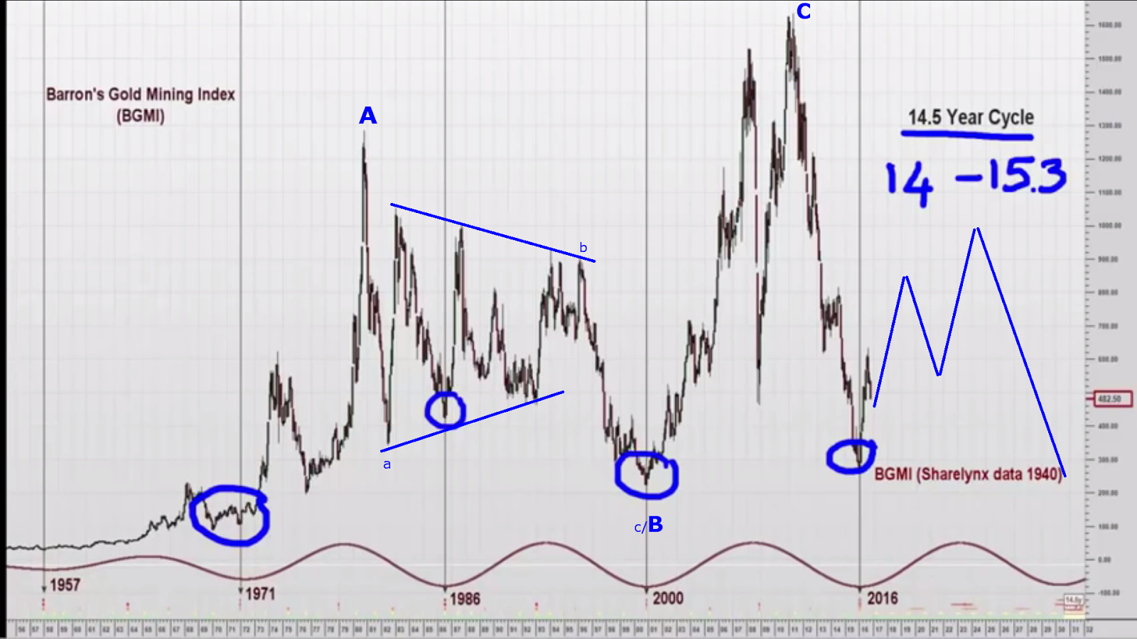 BMGI index long term chart of gold miners. We have 14-15 year cycle