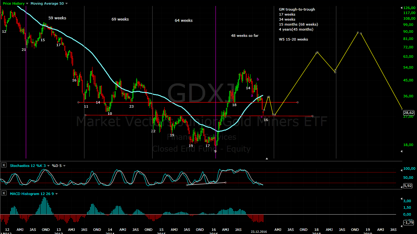 oder Start im Frühjahr : Gold miners are stronger. The double zig-zag is well visible, but again the 18 month cycle low should be later in March 2017.