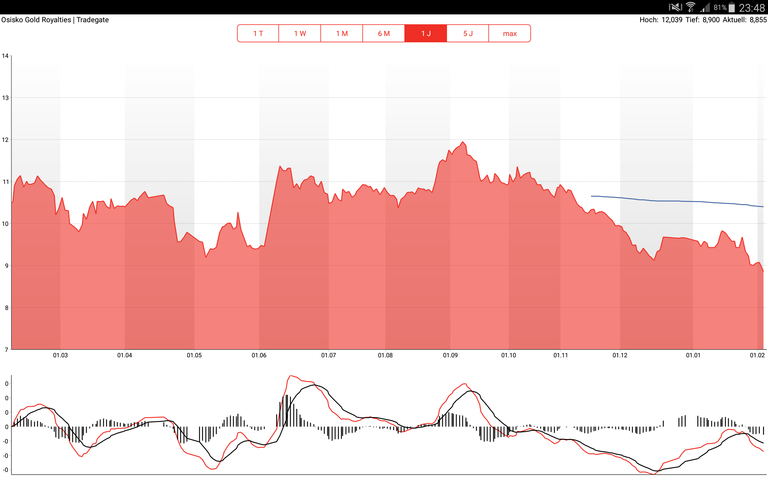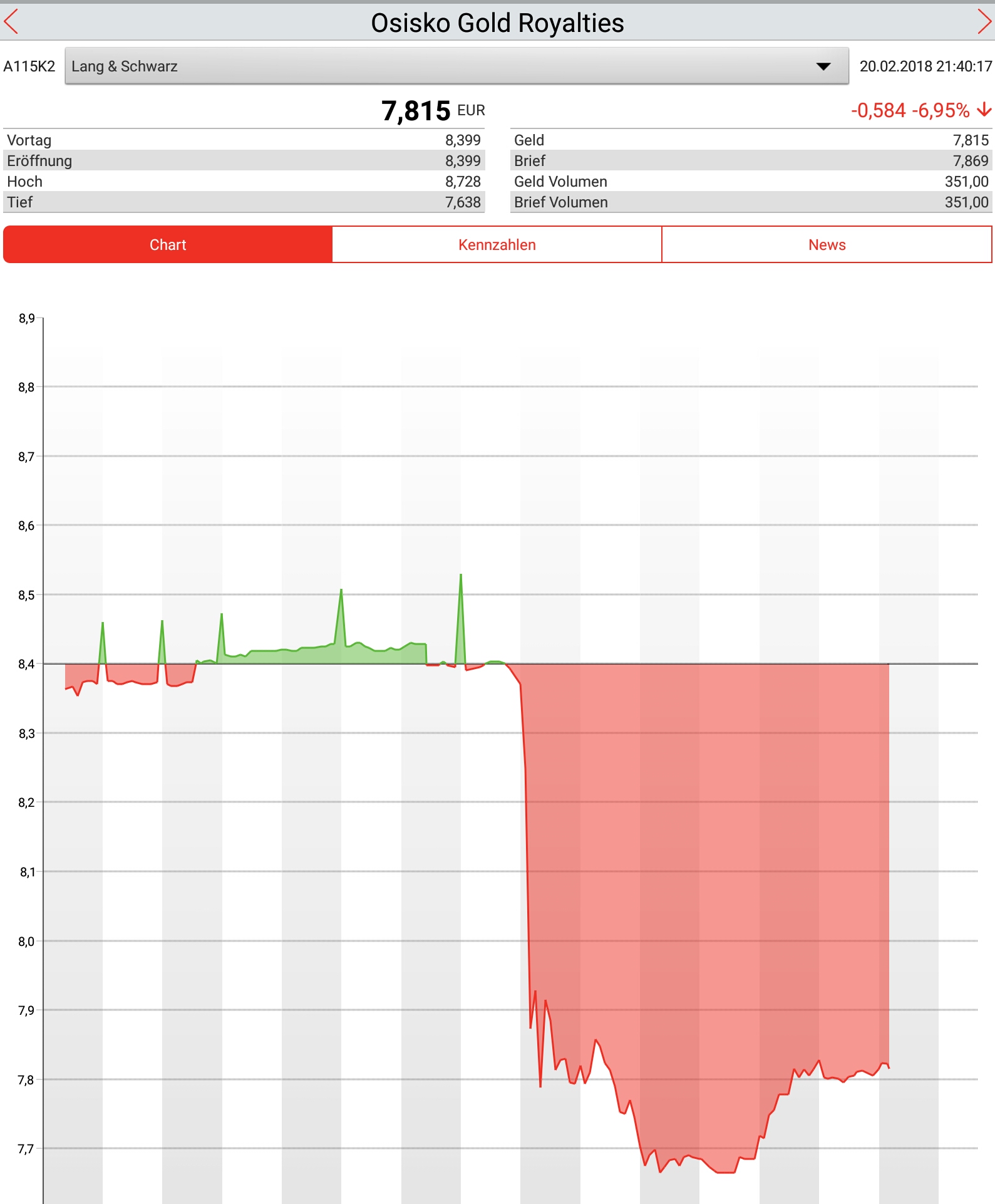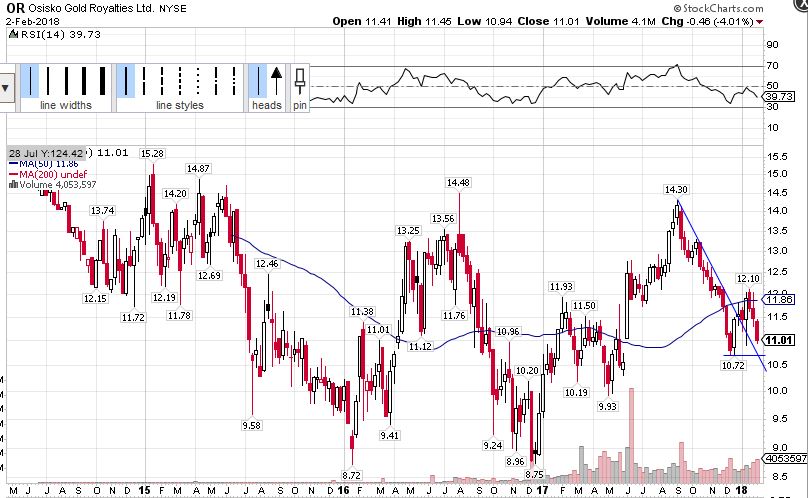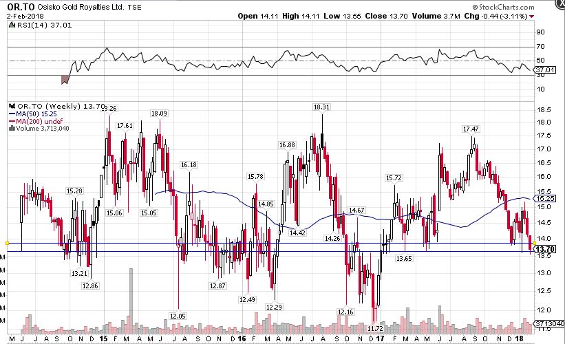 Osisko wird mehrfach empfohlen, aber sie hat seltsamerweise eine schlechte Performance, sogar stärker korrigiert als Franco-Nevada z.B. oder Royal Gold, die ich für interessanter finde, ist aber ganz persönliche Einschätzung.