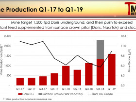 • Nachdem die schönen Kursgewinne seit September 2018 in atemberaubender Geschwindigkeit innerhalb von nur 2 Monaten wieder komplett hergeschenkt wurden und damit nun ein Doppelboden eingezogen wurde, geht es auf Basis der erfreulichen Q1-Produktionsergebnisse heute deutlich nach oben mit dem Kurs... Das Hochfahren der Produktion in der Doris-Mine läuft offenbar mehr als zufriedenstellend, was zu einem über den Erwartungen liegenden Produktionsergebnis geführt hat:
