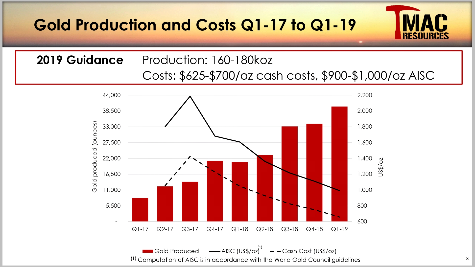 In meinen obigen Beiträgen habe ich ja schon zum Ausdruck gebracht, dass TMAC m.E. eine super Wachstumsstory werden kann, falls das Ramp-Up klappt, die AISC weiter fallen, Explorationserfolge anhalten und eine sinnvolle Finanzierung sichergestellt werden kann.
