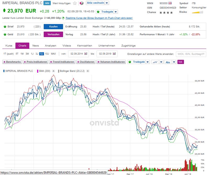 Ich habe Imperial Brands in Beobachtung, ist zwar ne Tabak-Aktie aus GB, aber seit kurzem