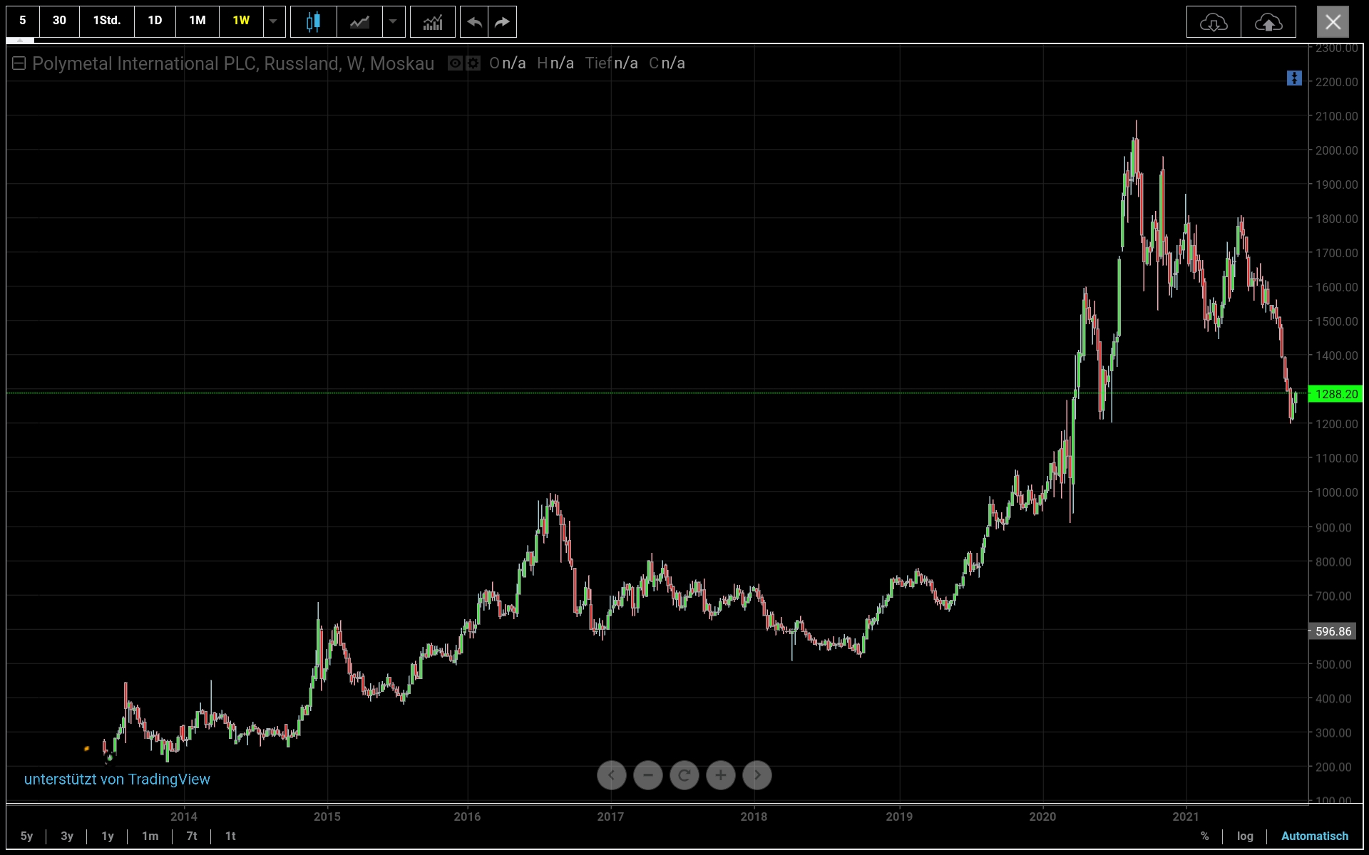 Der Minensektor wird sich auf steigende Preise für Equipment und Energie einstellen müssen. Die AISC werden steigen und das sicher nicht nur bei Polymetal. Mir kommt vor alles steigt, nur der Goldpreis zeigt keine Stärke. Geht es hier wirklich demnächst auf < 1000 Pence?