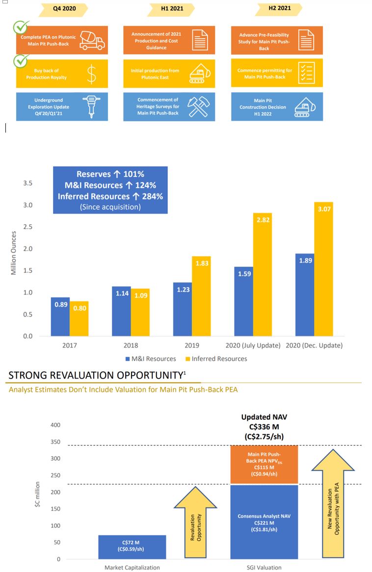 Plausibler Turnaround- und Wachstumsplan mit POSITIVER PEA FOR THE PLUTONIC MAIN PIT PUSH-BACK PROJECT. (Wieder-) Inbetriebnahme zweite Mühle – d.h. Rückkehr zu 150.000 oz bei aktuellem Goldpreis plausibel und sowohl finanziell als auch technisch machbar.