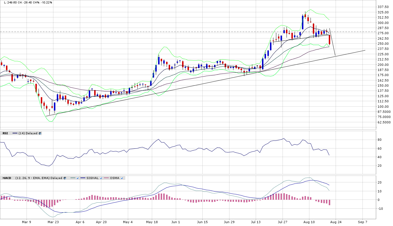 Mir scheint es noch etwas früh für Käufe zu sein. Trendbruch erst seit heute, das könnte noch mindestens ein paar Tage gehen, bis es sich ausgependelt hat. Wir könnten uns nun in einer c-Welle nach unten befinden, um 225 würde ein Tief viel Sinn machen....