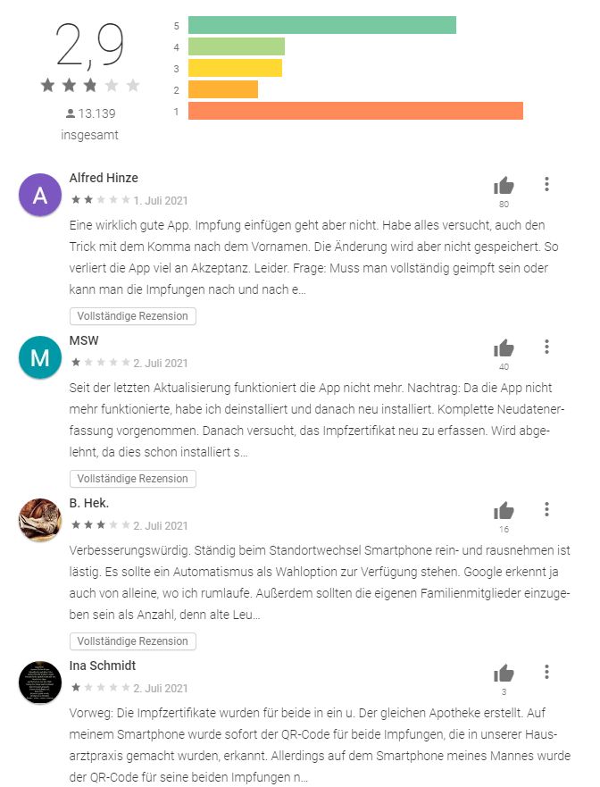 Eine google-app Bewertung von 2,9 bedeutet realistisch "Bullshit" im Schafland.