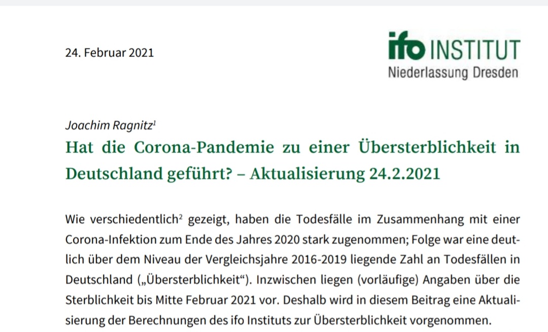 Wenn ich zitiere, dann gemäß der allgemein gültigen Regeln (im Gegensatz zu einigen notorischen "Troll" - Schreiern). Gibt es jemanden seriöses, der die überhöhte Sterblichkeit abstreitet? Das von dir ins Spiel gebrachte Ifo Insititut tut es nicht.