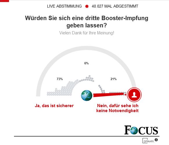 meine Schwipp-Cousine, Mitte 40 hat sich am Sa. den ersten Pieks der Gentherapie abgeholt aus Angst, was auf "der Arbeit passiert". Am So. gings ihr nicht gut, gestern traf ich sie persönlich und mir schien, als fehle ihr nix.