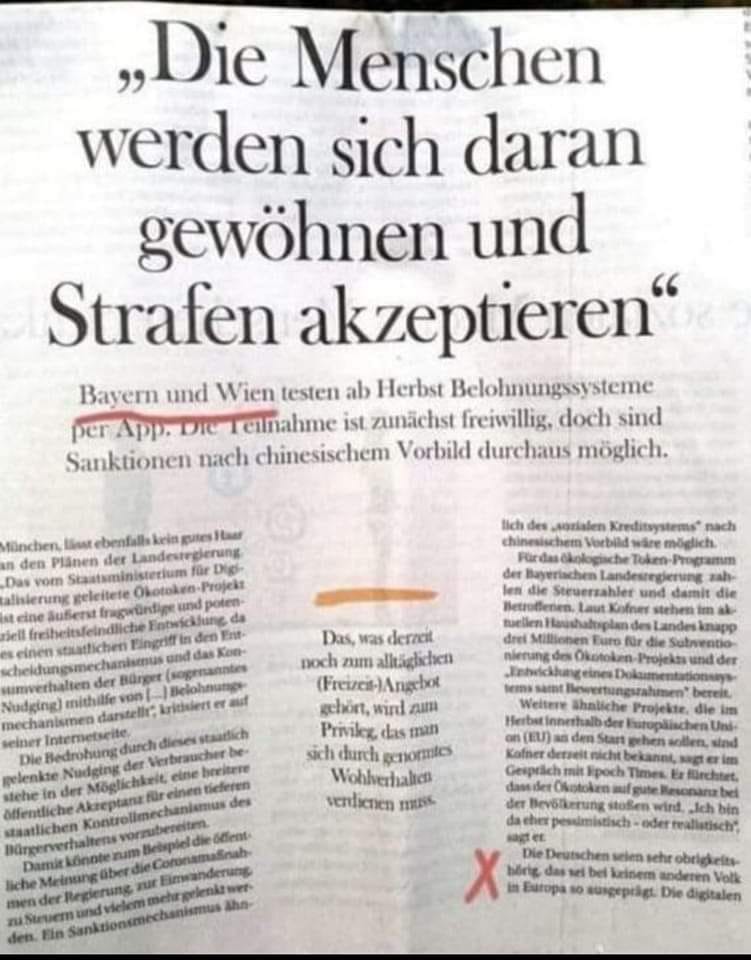 Alles anzeigenSocial Credit System nicht nur in Italien: Auch in Bayern kommt dieses Jahr ein solches System