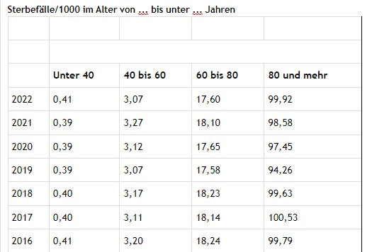 Die Zahlen sind nicht genau, weil Bevölkerungszahlen für 2022 nicht vorliegen, An der Stelle habe ich die von 2021 verwendet.