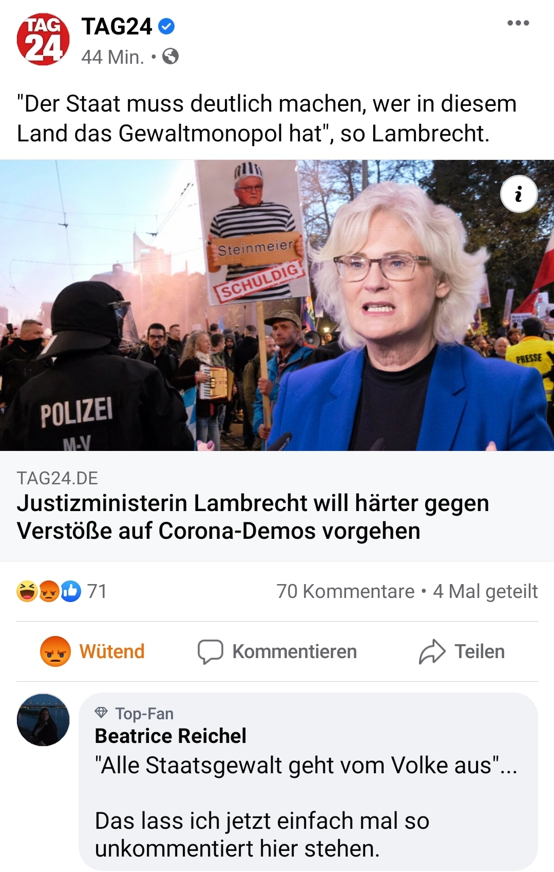 Aber macht doch mal die Augen auf. Ihr erlebt doch gerade live und in Farbe, wie genau diese menschlichen Regungen hemmungslos ausgenutzt werden, um eine Gesellschaft, die noch vor wenigen Jahrzehnten relativ sorglos vor sich hinleben durfte, systematisch gegen die Wand zu fahren.
