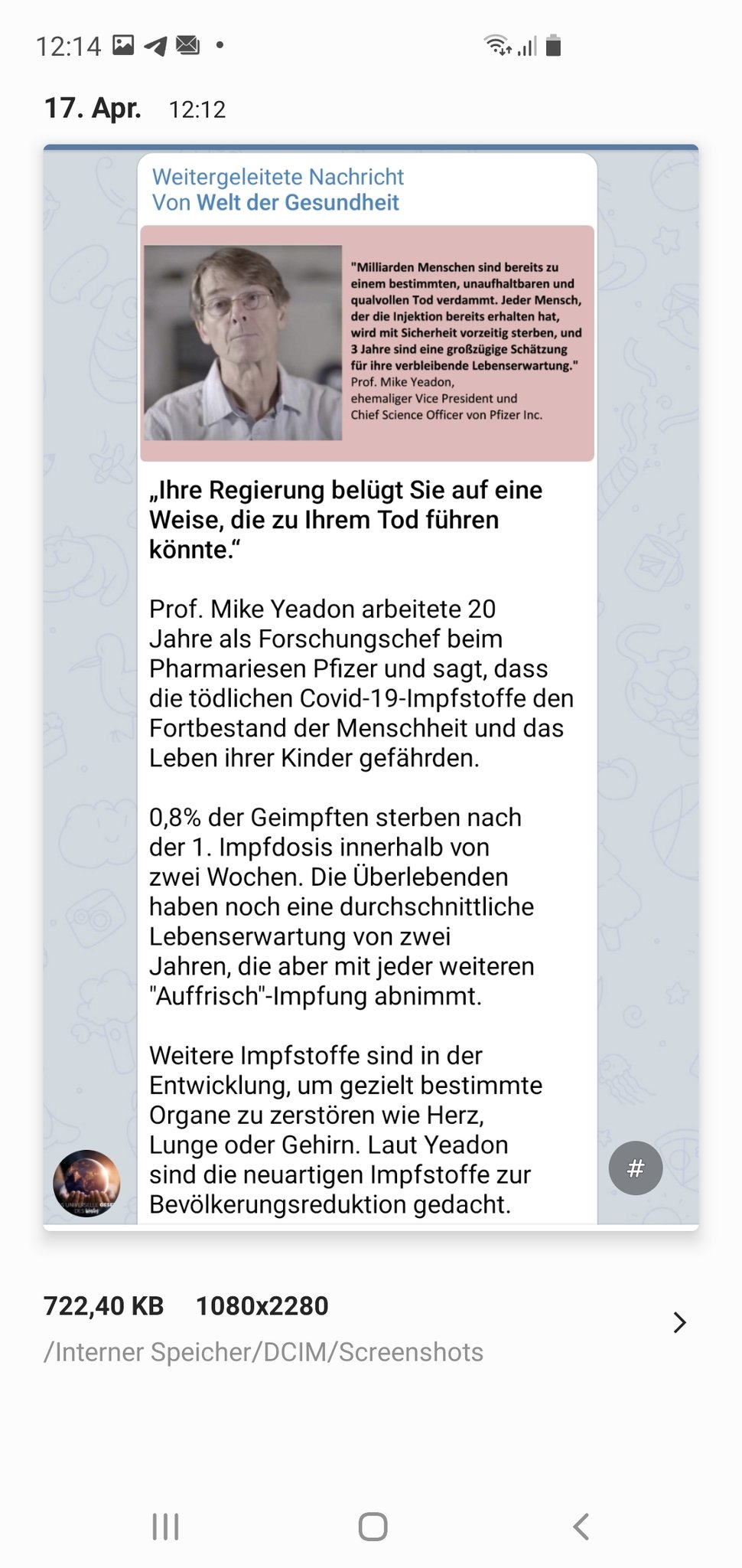 • Daran habe ich nicht den geringsten Zweifel. Aber das alle bis jetzt geimpften in 2 Jahren verstorben sein werden ist Stuss und das hat Yeadon auch garantiert nicht gesagt, weil er das unter gar keinen Umständen wissen kann/könnte.