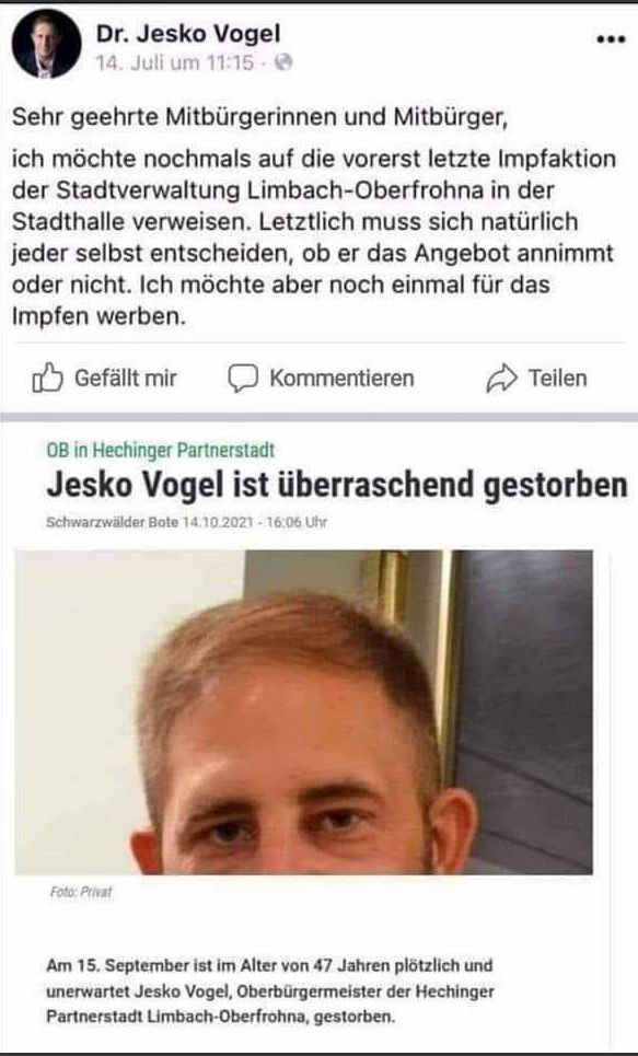 Quelle? So etwas kann ich gut gebrauchen. Ist ja schließlich bald das christliche Fest "Halloween" und da hört man doch gerne gruselige Geschichten, besonders, wenn sie der Wahrheit entsprechen und die Chance besteht, künftig selbst als Geimpfter Hauptdarsteller sein zu können. ![]()