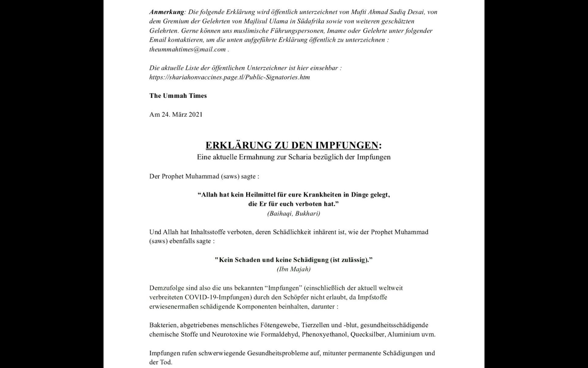 Kann sein, dass man die Muslime von der Impfpflicht befreit. Vielleicht wegen Terrorgefahr.