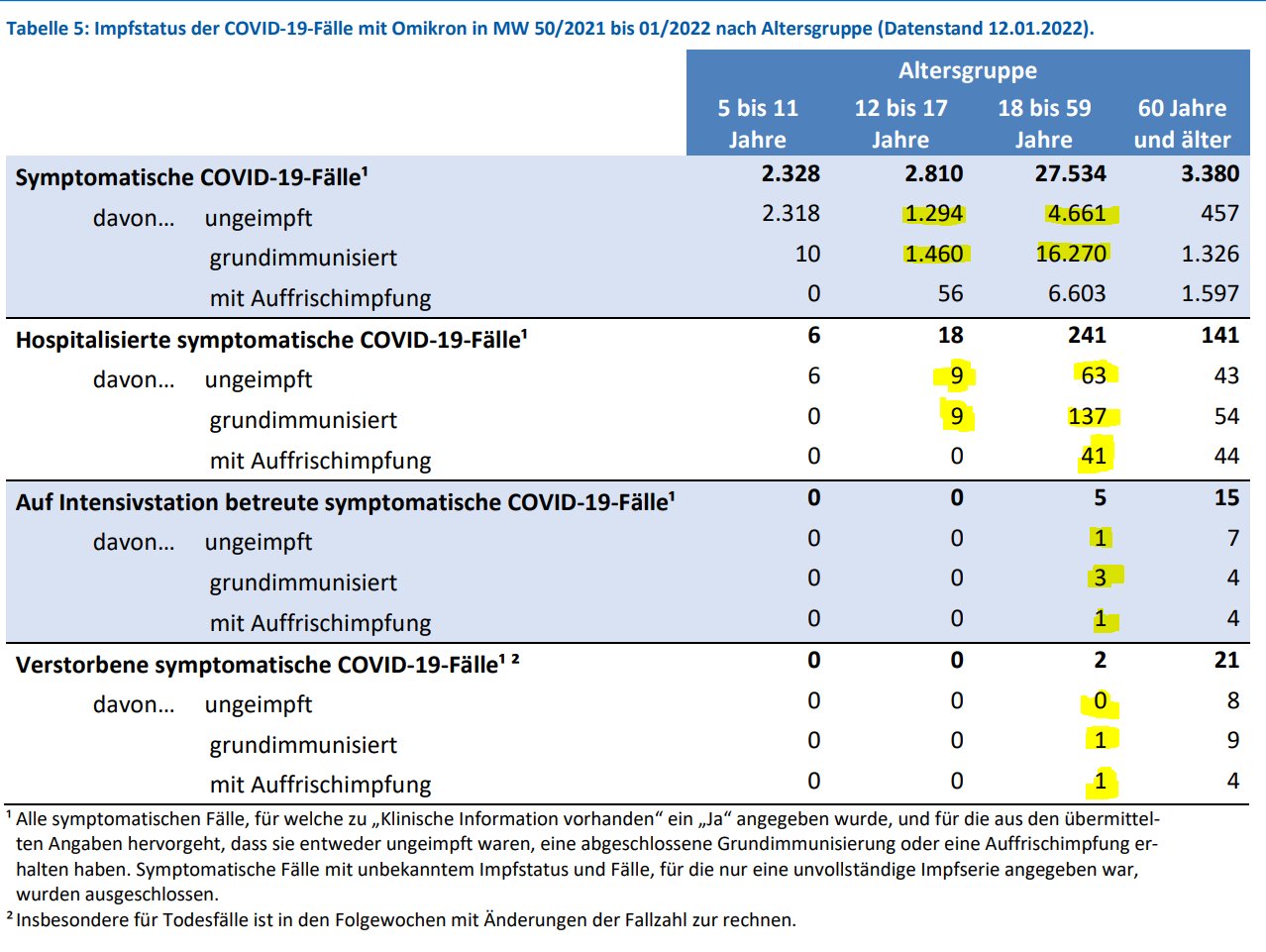 Das ist ein katastrophales Ergebnis für diese Arzneimittel. Die Sterblichkeit bei den Geimpften ist drastisch höher als bei den Ungeimpften. Die RRR schwankt zwar stark von Woche zu Woche, weil die Gesamtzahlen jeweils klein sind. Die letzte Dezemberwoche hatte eine 8-fach so hohe Mortalitätsrate bei den 2-fach geimpften, was sich dämpfend auf die erste Woche im Januar ausgewirkt hat und es etwas weniger Todesfälle bei den „vollständig immunisierten“ gegeben hat. Der Booster Shot scheint kurzfristig zu wirken, aber auch hier wird bald der Abfall kommen.