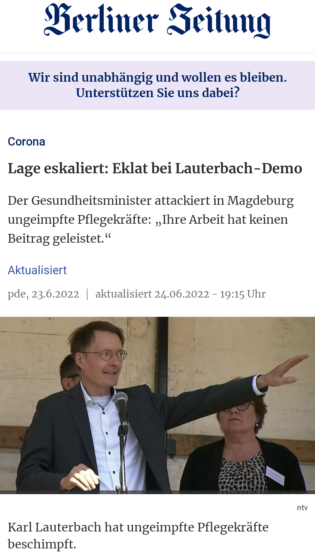 Die guten Volkszertreter und Wizzenschaftler, sind jetzt die, die am lautesten gegen Lauterbach brüllen, in der Hoffnung das dieser schnelle Maskenwechsel des einstigen Corona-Agitator an den meisten Menschen vorbei geht.