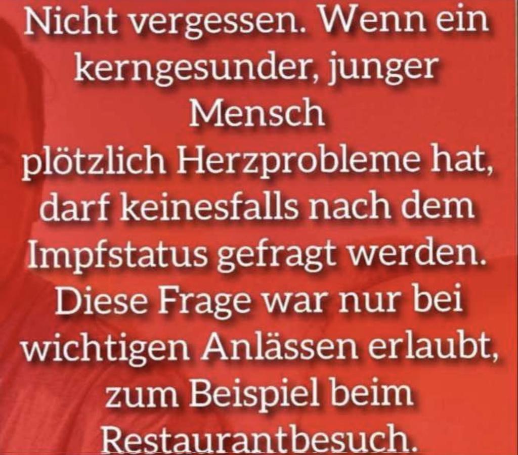 Allerdings finde ich solche Videos total fragwürdig, da nur eine kurze Momentaufnahme und Texte dazu, es liegt an der Impfung ja nicht verifiziert werden können.