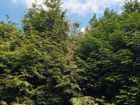 Hatte gerade welche auf ca. 5,5m Höhe in einem überhängenden Fichtenast.