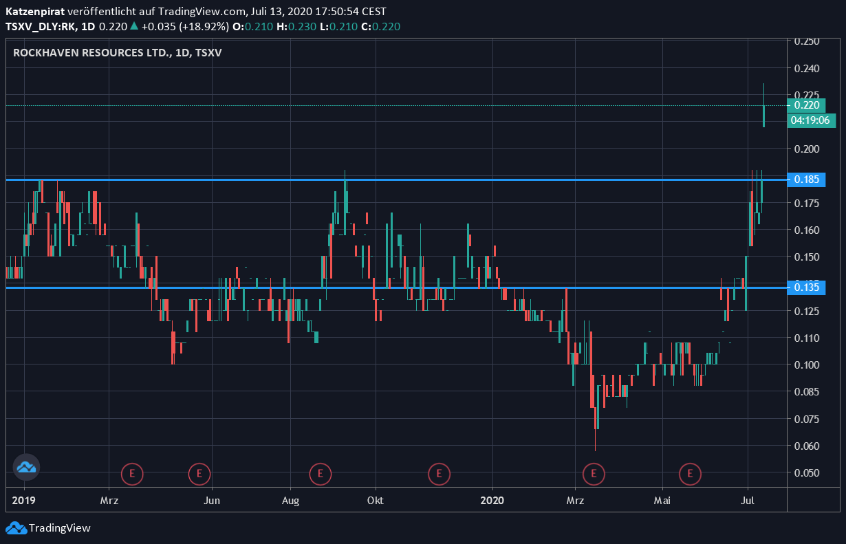 Ich erwarte einen raschen Vorstoss in die Widerstandszone um 0.185 CAD. Erfolgt dieser nicht zeitnah, werde ich mich wieder verabschieden. Jetzt ist nicht der Moment mit Titeln Seitwärtsphasen auszusitzen. Zuviel Projekte mit Potential stehen bereit. :!: