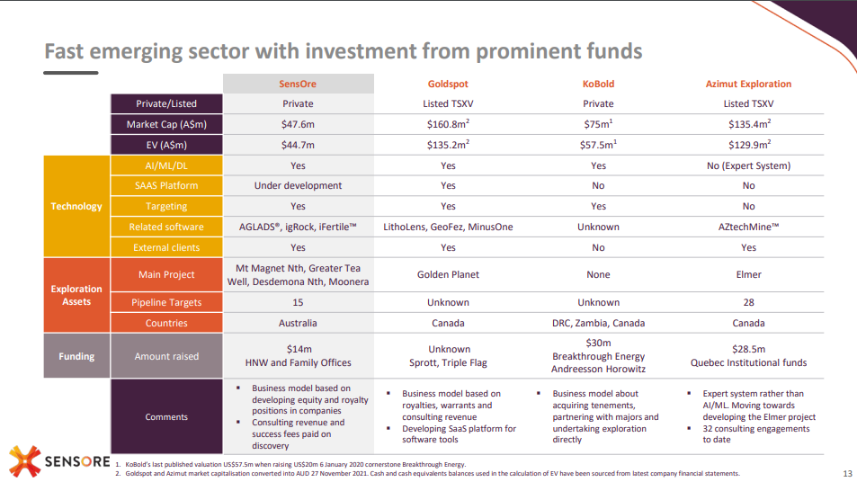 11 FebSensOre (S3N) hit the local bourse today. The company aims to become the top-performing minerals targeting company by using a combination of big data and AI machine learning to provide the next generation of exploration success for in-demand commodities in Australia and internationally. Richard Taylor, Director of SensOre joined ausbiz for the detail. While there are similar programs ongoing in the US, we are the only player locally on the ASX says Richard. We aim to work collaboratively with the market, particularly with the big names to make sure innovation is at the forefront he indicates. One of those development partnerships is BHP. Find out more about the company's WA goldfield drill programs and future AI targets.