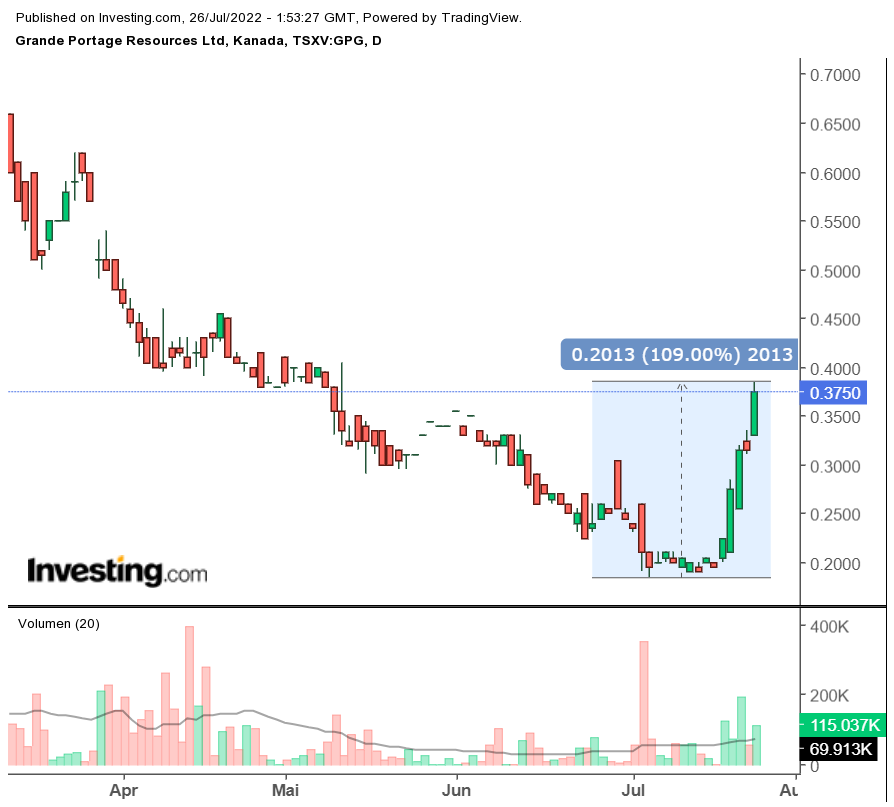 http://grandeportage.com/news/grande-portage-resources-announces-exercise-of-warrants-adding-2.34-million-to-the-treasury/"VANCOUVER, BC, July 28, 2021 – Grande Portage Resources Ltd. (TSX-V “GPG”); (OTCQB:“GPTRF”); (Frankfurt: “GPB”); ("Grande Portage" or "the Company") is pleased to announce that its shareholders have exercised approximately 99% of the outstanding warrants expiring on July 30, July 31 and August 6, 2021 (14,874,099 warrants) with net proceeds of $2,334,520 being added to the Company’s treasury.